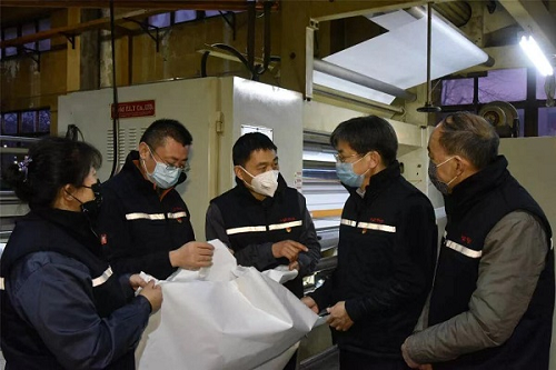 通用技术集团中纺新材料科技有限公司加紧生产一次性医用防护服面料。